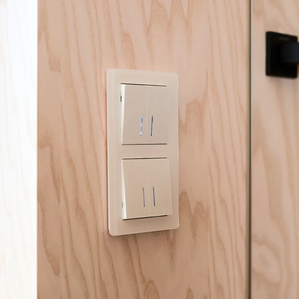• Эстетика: рамки из акрила цвета айвори и черные розетки создают стильный контраст, подчеркивая современный дизайн.